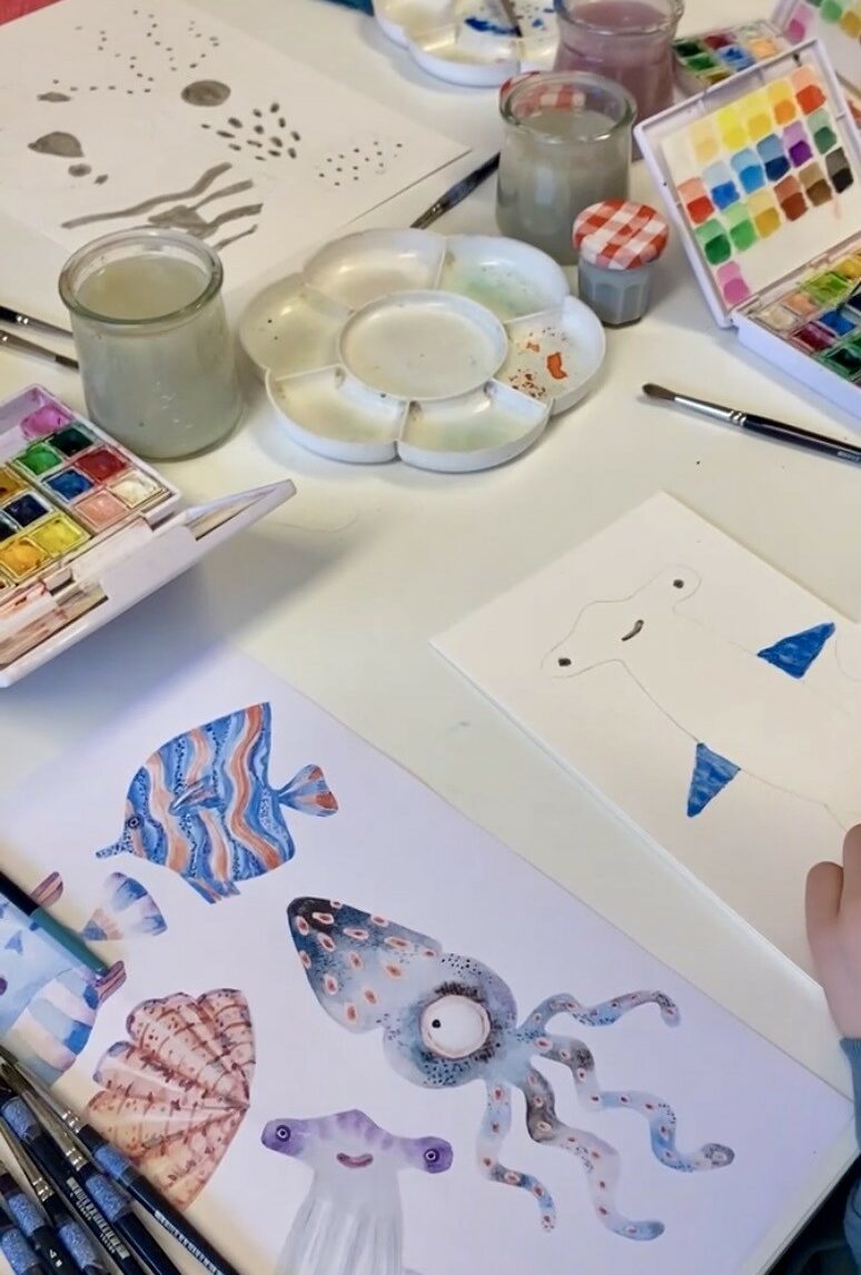 Axelle de Studio ATK et Atelier Polette proposent un atelier Aquarelle rien que pour les kids, dès 8 ans, sur le thème marin.